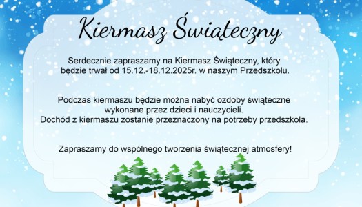 Zapraszamy na Kiermasz Świąteczny, który odbędzie się w naszym Przedszkolu!