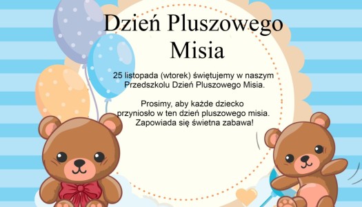 25 listopada (wtorek) świętujemy w naszym Przedszkolu Dzień Pluszowego Misia
