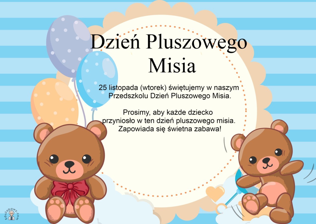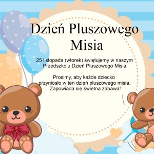 25 listopada (wtorek) świętujemy w naszym Przedszkolu Dzień Pluszowego Misia