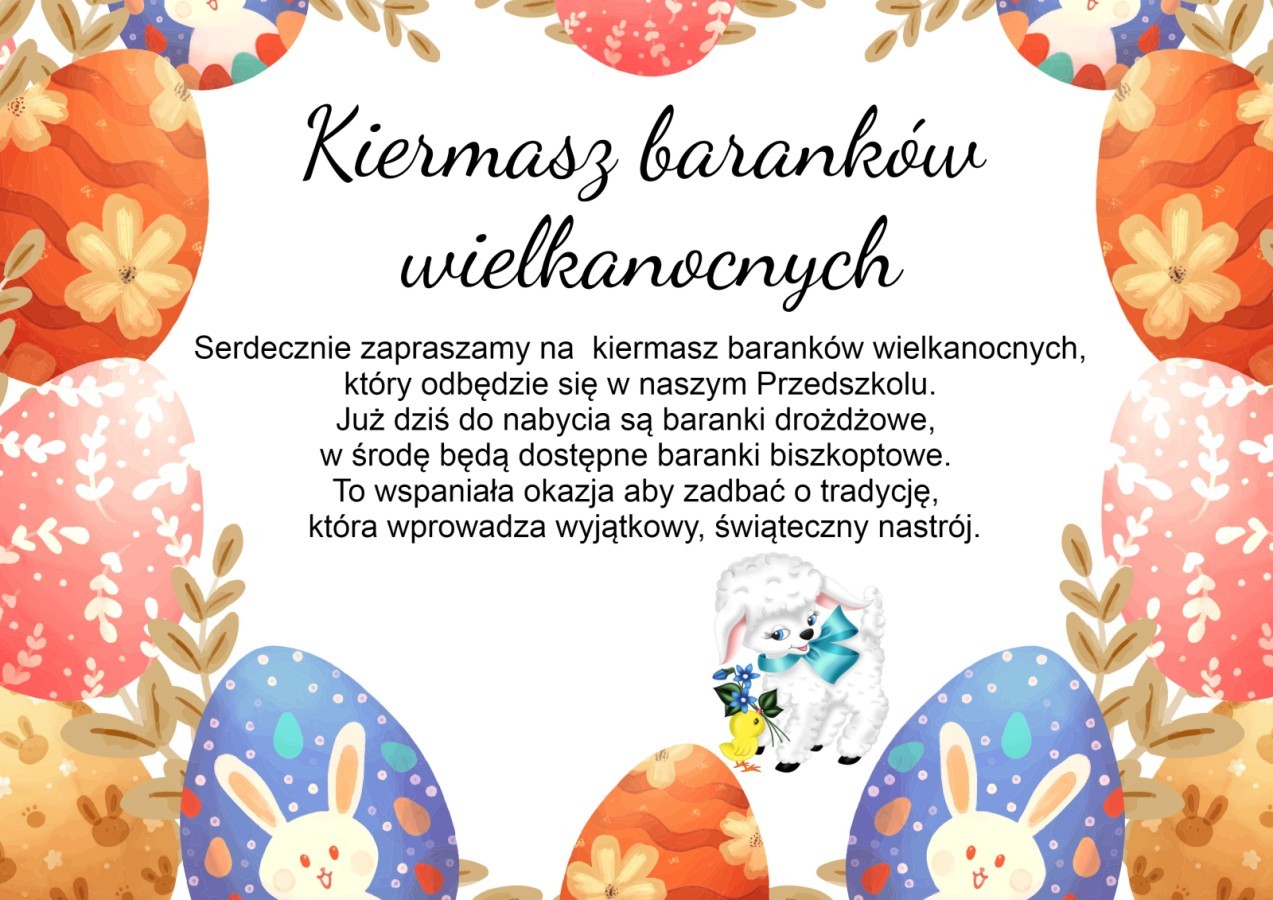 Kiermasz baranków wielkanocnych w naszym Przedszkolu. Serdecznie zapraszamy!