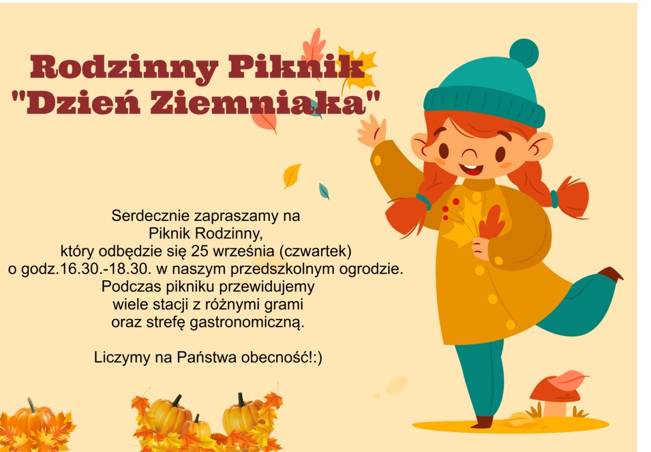 Zapraszamy serdecznie na Rodzinny Piknik "Dzień Ziemniaka", który odbędzie się  25 września (czwartek) o godz.16.30.-18.30.