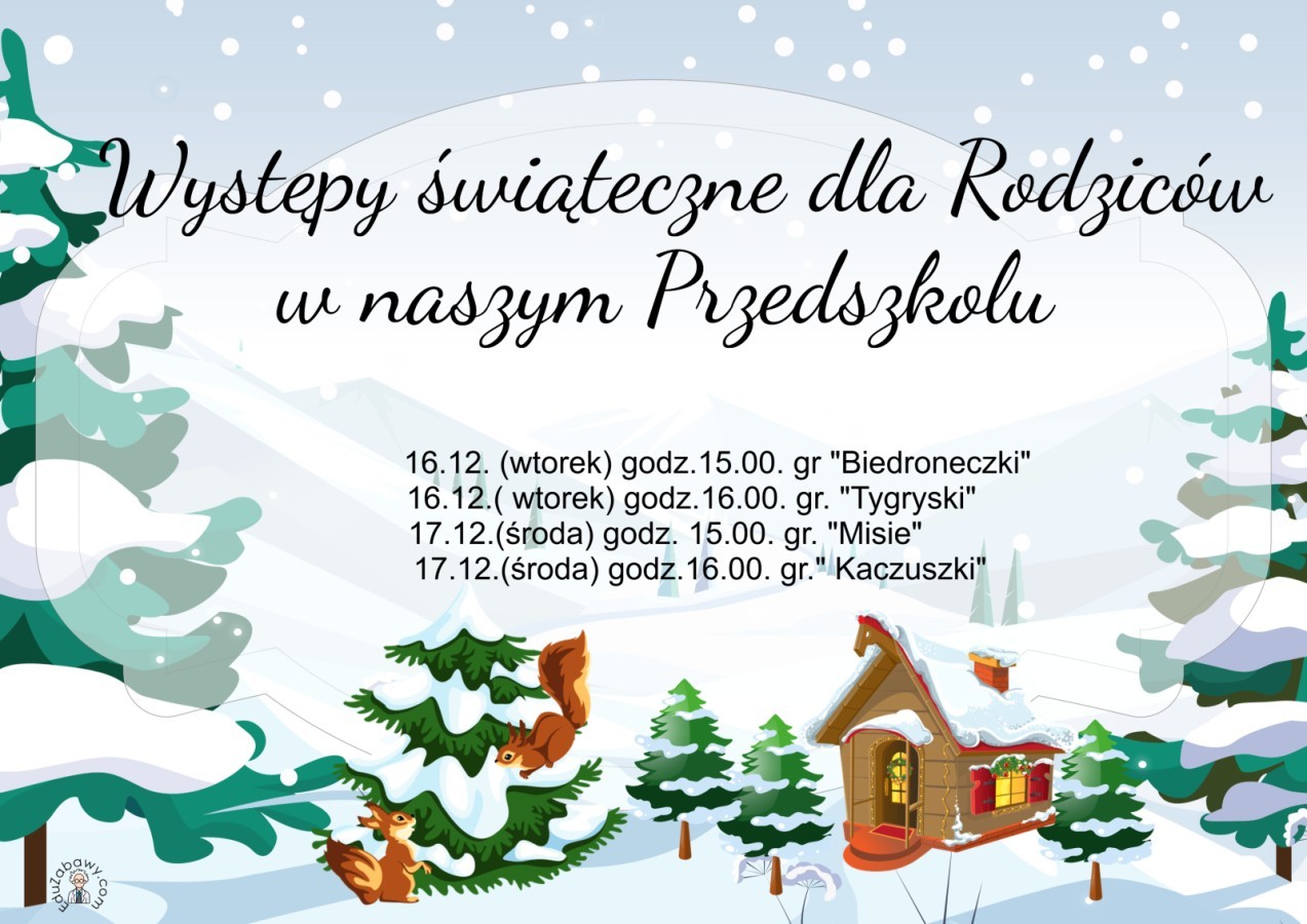 Zapraszamy Rodziców na nasze występy świąteczne z okazji zbliżających się Świąt Bożego Narodzenia!